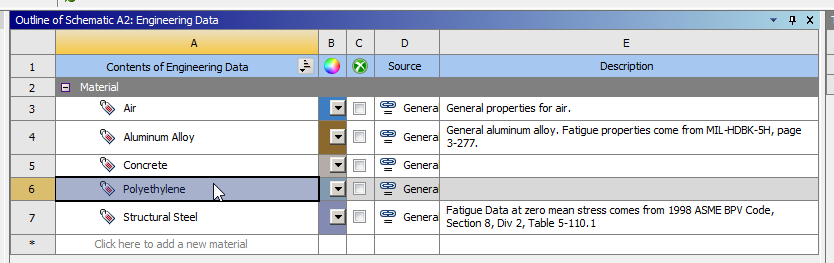 Is it possible with ACT to get the currently selected 'Polyethylene' material from the list of materials?