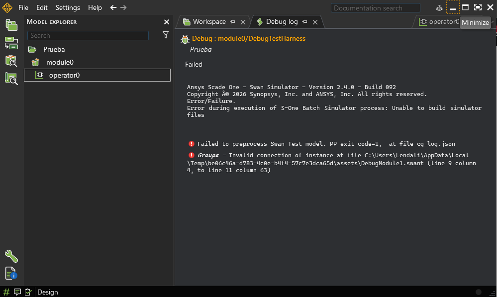 Hello, I am having an issue with Ansys Scade One. When running the simulation, the following error appears: