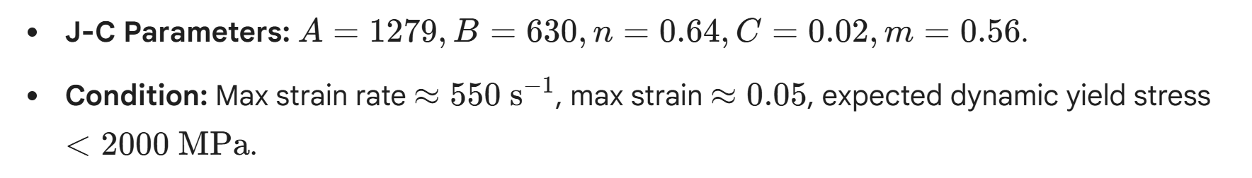 I am simulating the impact behavior of high-strength material using Ansys Explicit Dynamics with the Johnson-Cook model.