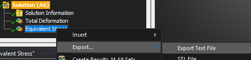 Then, insert an equivalent stress result, evaluate it, and export to text file: